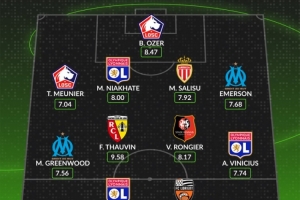 中場:梅森·格林伍德(馬賽,7.56分)、弗洛里安·托萬(朗斯,9.58分)、瓦倫汀·隆吉耶(雷恩,8.17分)、阿布納·維尼修斯(里昂,7.74分)