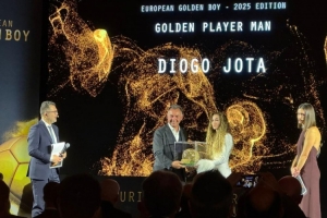 體育資訊12月2日訊 在《都靈體育報(bào)》金童獎(jiǎng)?lì)C獎(jiǎng)典禮上,在今年夏天車(chē)禍去世的若塔被象征性地授予了“年度金球員”榮譽(yù),他的遺孀魯特·卡爾多索上臺(tái)領(lǐng)取了這份獎(jiǎng)項(xiàng)。