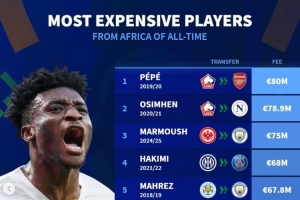 體育資訊7月12日訊 熱刺在昨日已經(jīng)官宣簽下西漢姆中場庫杜斯,《轉會市場》統(tǒng)計顯示他也是非洲歷史第6貴的球員。