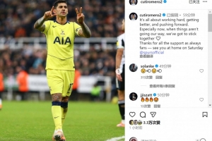 羅梅羅社媒曬出比賽照片,配文:“一切都關(guān)乎努力拼搏、不斷進步、勇往直前。尤其在當下,當事態(tài)不如意時,我們更要團結(jié)一心??”