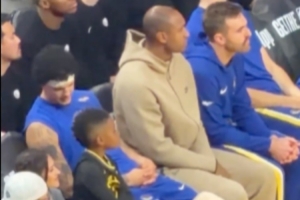 比賽中鏡頭捕捉到有趣的一幕:追夢(mèng)上場(chǎng)比賽時(shí),他的兒子小追夢(mèng)坐在他的位置上認(rèn)真觀看,幫爸爸暖凳子。