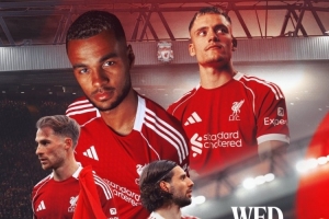 利物浦官方社媒發(fā)布了為此役制作的海報(bào),維爾茨、索博斯洛伊、麥卡利斯特、加克波出鏡。