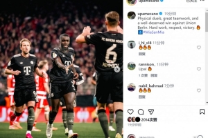 于帕梅卡諾社媒曬出慶祝的照片,配文:“身體對(duì)抗、團(tuán)隊(duì)協(xié)作,對(duì)陣柏林聯(lián)合的一場(chǎng)實(shí)至名歸的勝利。 拼搏,尊重,凱旋??”