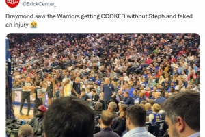美媒BrickCenter嘲諷道:“追夢(mèng)看到勇士在沒有庫里的情況下被打爆了,所以他假裝自己受傷了。”