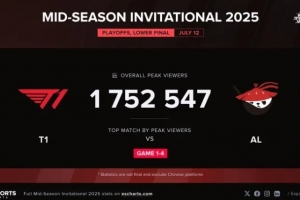 體育資訊7月12日訊 外媒Esports Charts分享AL對(duì)戰(zhàn)T1海外峰值,具體如下: