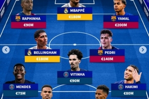 前鋒:拉菲尼亞(巴薩)、姆巴佩(皇馬)、亞馬爾(巴薩)