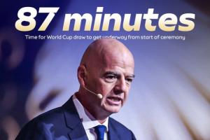 世界杯抽簽儀式于今晨舉行,據(jù)天空體育統(tǒng)計(jì),本次抽簽儀式從開始到抽出第一支球隊(duì)共耗時(shí)87分鐘,幾乎和一場足球比賽時(shí)間一樣長。