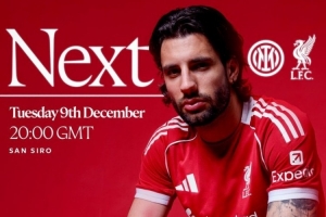 利物浦官推今日曬出海報,為比賽預(yù)熱,官推寫道:“歐冠第六輪,我們將面對國際米蘭?!?/p>