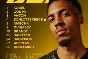 多特蒙德首發(fā):1-科貝爾、2-揚(yáng)·庫托、3-安東、4-施洛特貝克、8-恩梅查、9-吉拉西、10-布蘭特、20-薩比策、24-斯文松、27-阿德耶米、28-安塞爾米諾