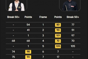 開場(chǎng),馬克·塞爾比打出連續(xù)高分直下五局,隨后特魯姆普抓住機(jī)會(huì)連續(xù)打出單桿74分和75分連追兩局,第八局特魯姆普擊打黑球失誤,塞爾比打出單桿66分超分,特魯姆普逆轉(zhuǎn)未果。