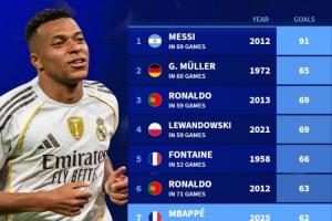 體育資訊12月08日訊姆巴佩今年進(jìn)球已達(dá)62球,進(jìn)入歷史前十,德轉(zhuǎn)盤點(diǎn)了足壇歷史自然年進(jìn)球紀(jì)錄。