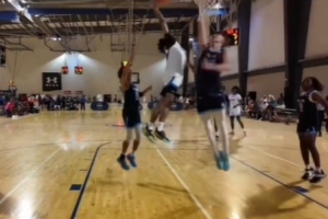 朱正曬出自己在比賽中隔扣對手的視頻,配文寫道:“17+7 加上這個隔扣,讓這些打UAA的小伙伴知道誰從U19男籃世界杯回來?!?/p>