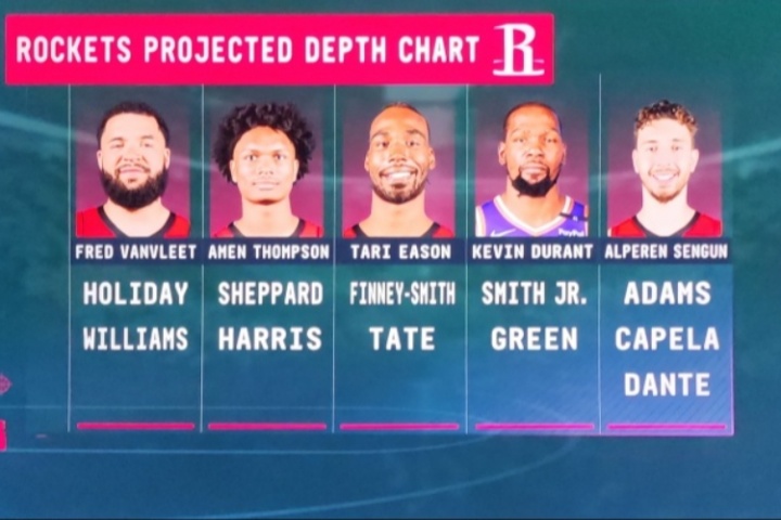 體育資訊07月12日訊 今日夏聯(lián)對陣快船,火箭總經(jīng)理斯通在現(xiàn)場接受采訪時,轉(zhuǎn)播方曬出的火箭陣容深度圖: