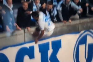 在馬格德堡客場(chǎng)2-0擊敗柏林赫塔的比賽中,這位法國(guó)進(jìn)攻球員在傷停補(bǔ)時(shí)進(jìn)球后轉(zhuǎn)向客隊(duì)看臺(tái)慶祝,跳過看臺(tái)前的欄桿,卻出乎自己意料地掉進(jìn)了一個(gè)2.7米深的溝里。