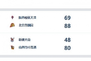 北京首鋼園88-69陜西榆林天澤,詹姆斯獨得26分5籃板,米切爾18分11籃板,鄭茗復出得到12分,潘臻琦10分7助攻。陜西女籃卡爾霍恩21分5籃板,庫克斯17分5籃板,方卓雅17分。