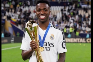 皇馬官方曬出維尼修斯本賽季贏得洲際杯的照片,并表示:“生日快樂(lè),@維尼修斯!”
