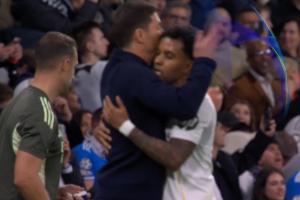 體育資訊12月11日訊 皇馬vs曼城,羅德里戈上半場破門,進球后一段時間轉(zhuǎn)播回放鏡頭,羅德里戈進球后擁抱了阿隆索!