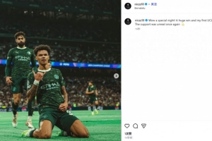 他也在賽后通過社媒曬出自己的滑跪慶祝照,并配文:“哇,真是個(gè)特別的夜晚!一場(chǎng)酣暢淋漓的勝利,還有我的歐冠首球!球迷們的支持再次令人感到難以置信??”