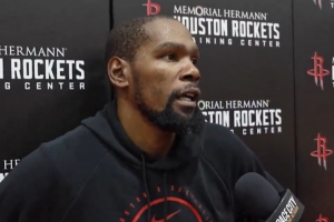 體育資訊12月11日訊 火箭球星杜蘭特在今日訓(xùn)練結(jié)束后接受了采訪,談到明天的對(duì)手快船和哈登。