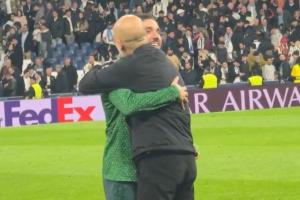 體育資訊12月11日訊 歐冠第6輪曼城客場2-1逆轉(zhuǎn)擊敗皇馬,賽后瓜迪奧拉被拍到與弟子謝爾基親切交流。