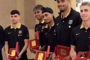 體育資訊12月11日訊 據(jù)每體報(bào)道,巴薩球員今日收到了到訪巴薩的阿聯(lián)酋客人送出的金色定制款iPhone 17 Pro Max。
