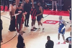 賽后,哈登和火箭球員教練擁抱,其中和卡佩拉擁抱的時(shí)間最久。