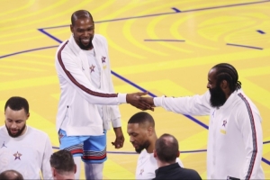 杜蘭特在Instagram快拍中用一個詞慶祝了哈登的成就:“傳奇”。