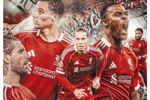 利物浦官方社媒發(fā)布了為此役制作的海報,范戴克、喬·戈麥斯、索博斯洛伊、赫拉芬貝赫、?;倏顺鲧R。