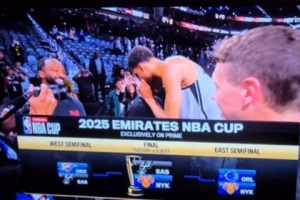 本場(chǎng)比賽保羅來(lái)到現(xiàn)場(chǎng)觀戰(zhàn)兩個(gè)老東家的對(duì)決,比賽結(jié)束后,文班亞馬和保羅耳語(yǔ)了一番,隨后兩人擊掌慶祝。
