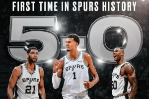 很難想象,在馬刺輝煌的球隊(duì)歷史上,竟從未有過5連勝開局,而那個(gè)夜晚,年僅21歲的文班亞馬,用27分、18個(gè)籃板、6次助攻和5次封蓋的華麗數(shù)據(jù),率隊(duì)107-101力克熱火,將戰(zhàn)績改寫為5勝0負(fù),就此書寫新的歷史。