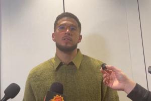 賽后,布克接受采訪時(shí)談到了自己對(duì)詹姆斯的關(guān)鍵三分犯規(guī)。