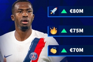 帕喬目前的身價為6500萬歐元,德轉(zhuǎn)給出的幾個數(shù)字分別8000萬歐元、7500萬歐元、7000萬歐元和6000萬歐元(下降)。