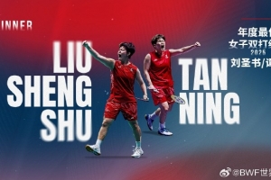 體育資訊12月15日訊 2025年世界羽聯(lián)年度最佳運(yùn)動(dòng)員獲獎(jiǎng)名單公布,劉圣書/譚寧當(dāng)選年度最佳女子雙打組合。