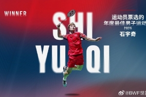 體育資訊12月15日訊 2025年世界羽聯年度最佳運動員獲獎名單公布,石宇奇當選運動員票選的年度最佳男子運動員。