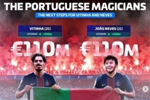 25歲的維蒂尼亞本賽季26場(chǎng)已貢獻(xiàn)6球10助攻、21歲的若昂·內(nèi)維斯20場(chǎng)貢獻(xiàn)8球3助攻,兩人的身價(jià)均上漲2千萬(wàn)歐元,達(dá)到1.1億歐元。