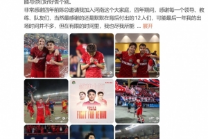 最后還是很高興這四年能在河南完成個人河南百場,也很高興打進(jìn)了河南的第1000粒進(jìn)球,唯有在足協(xié)杯上留有遺憾。但我相信,河南足球一定會有更輝煌的明天。