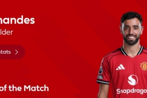 本場比賽B費傳射建功發(fā)揮出色,賽后他也當選英超官方評選出的本場最佳球員。