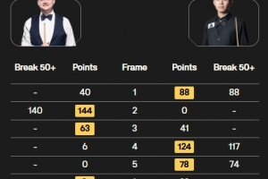 肖恩·墨菲打出單桿140分,劉宏宇打出一桿破百(117)和兩桿50+(88、74),雙方戰(zhàn)至決勝局,肖恩·墨菲以4-3的比分戰(zhàn)勝劉宏宇晉級32強(qiáng)。
