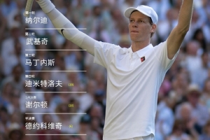 辛納將沖擊個人溫網(wǎng)首冠,本屆溫網(wǎng)辛納總比賽耗時11小時45分鐘,轟出了54記ACE,200個制勝分,總得分為547。