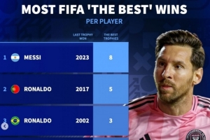 FIFA年度最佳球員獲獎(jiǎng)次數(shù):