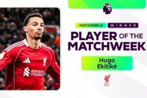 體育資訊12月17日訊 英超官方消息,利物浦前鋒?;倏吮辉u(píng)為聯(lián)賽第16輪最佳球員。