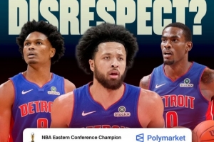 活塞隊(duì)以21勝5負(fù)的戰(zhàn)績領(lǐng)跑東部,但據(jù)預(yù)測機(jī)構(gòu)Polymarket預(yù)測,他們進(jìn)入總決賽的概率僅為13% ??
