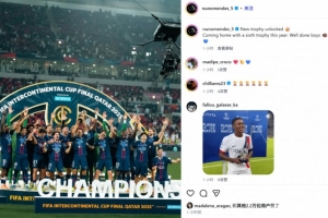 體育資訊12月18日訊 巴黎在洲際杯決賽點(diǎn)球擊敗弗拉門戈,努諾·門德斯首發(fā)踢滿全場(chǎng)。