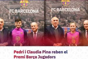 體育資訊12月18日訊 巴薩佩德里和克勞迪婭·皮娜獲得了巴塞羅那球員獎,這是俱樂部球員協(xié)會每年頒發(fā)的獎項,旨在表彰球員在該賽季展現(xiàn)出的公平競賽精神。協(xié)會主席胡安·曼努埃爾·阿森西和俱樂部董事何塞普·伊格納西·馬西亞在體育城舉行的儀式上負責向球員頒獎。