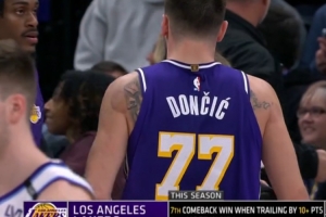 本場(chǎng)比賽,湖人最多落后10分,這是他們本賽季第七次在落后10+的情況下逆轉(zhuǎn)取勝,聯(lián)盟第二多。