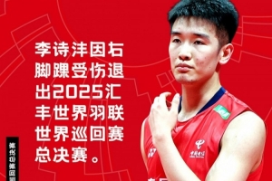 “李詩灃因右腳踝受傷退出2025匯豐世界羽聯(lián)世界巡回賽總決賽。隨著他的退賽,其所在小組的相關比賽結果將被視為無效。 ???祝愿李詩灃早日康復??????? ???”