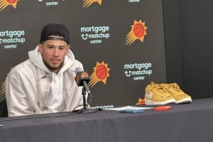 體育資訊12月19日訊 NBA常規(guī)賽,太陽主場99-98擊敗勇士。本場比賽,庫里穿著了布克的簽名鞋Book 1進(jìn)行比賽。