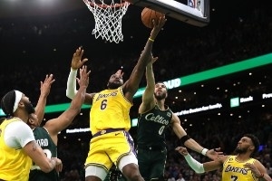 詹姆斯跪地 被塔圖姆打手裁判沒吹