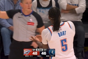 GIF-多特與戈貝爾籃板卡位推搡被吹犯規(guī),麥丹同時三分還命中