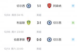 本場(chǎng)過(guò)后,切爾西5輪僅1勝積29分,落后榜首阿森納7分,身后4隊(duì)26分。